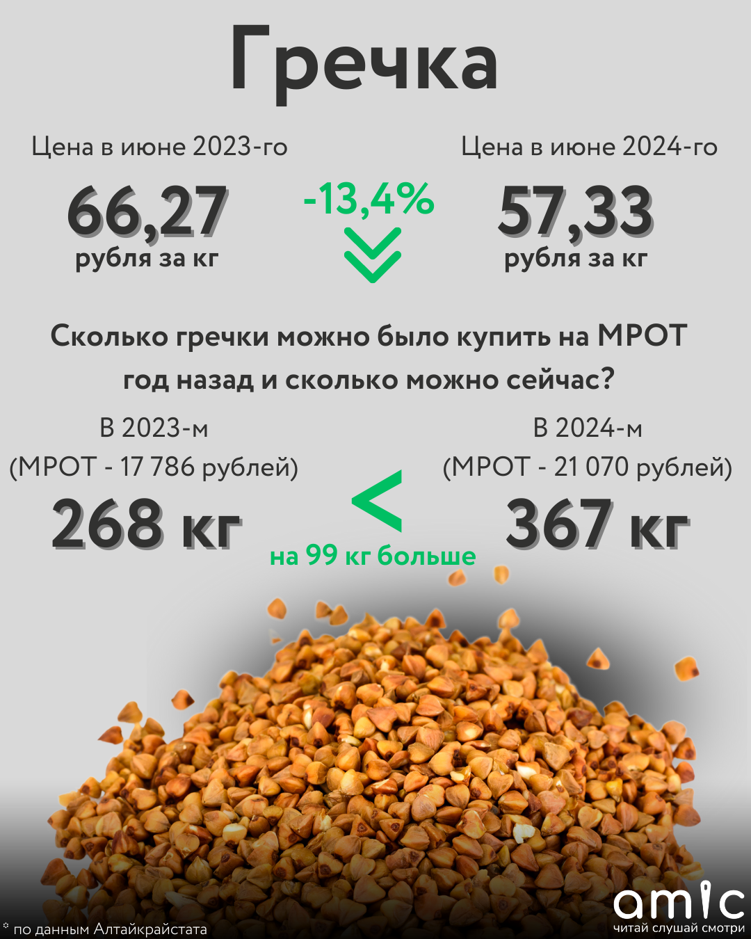Мы "измерили" минимальный размер оплаты труда в гречке, картошке и бананах В начале 2024-го в Алтайском крае увеличили минимальный размер оплаты труда на 18,5% .