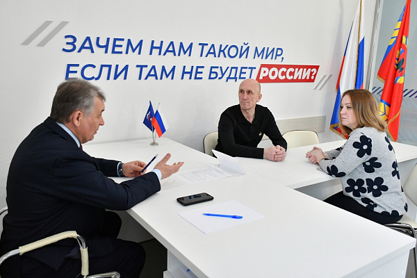 Накануне Дня защитника Отечества на прием к председателю АКЗС и секретарю регионального отделения «Единой России» Александру Романенко в штаб общественной поддержки партии пришел участник СВО Александр Незговоров.