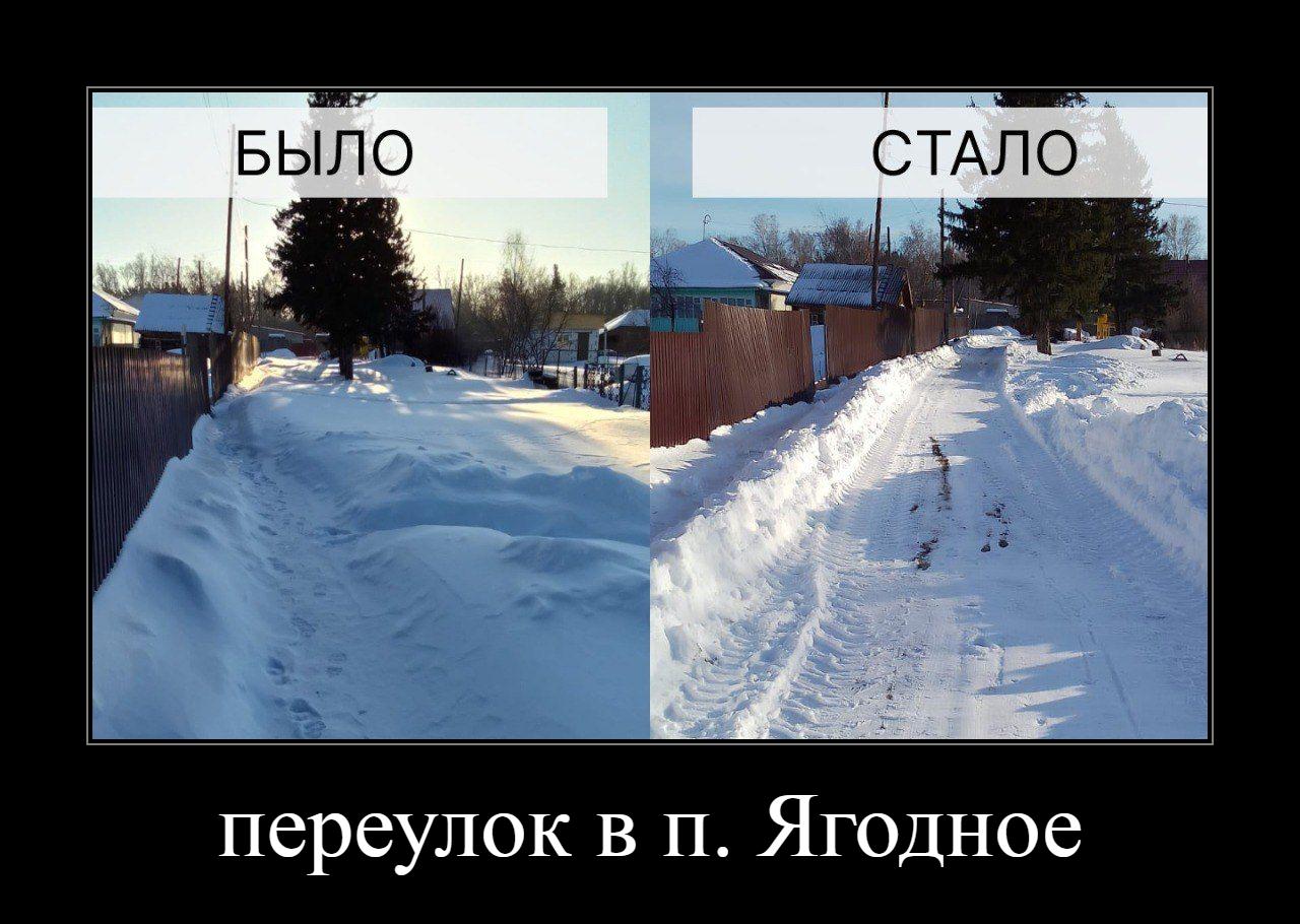 Жители пригородного поселка Ягодное опубликовали в соцсетях пост, в котором выразили благодарность сотрудникам КГКУ «Автодор», Лебяженской сельской администрации и лично депутату Барнаульской Думы Павлу Авкопашвили за быстрое решение проблемы с очисткой от снега переулка, примыкающего к ул. Первомайская.
