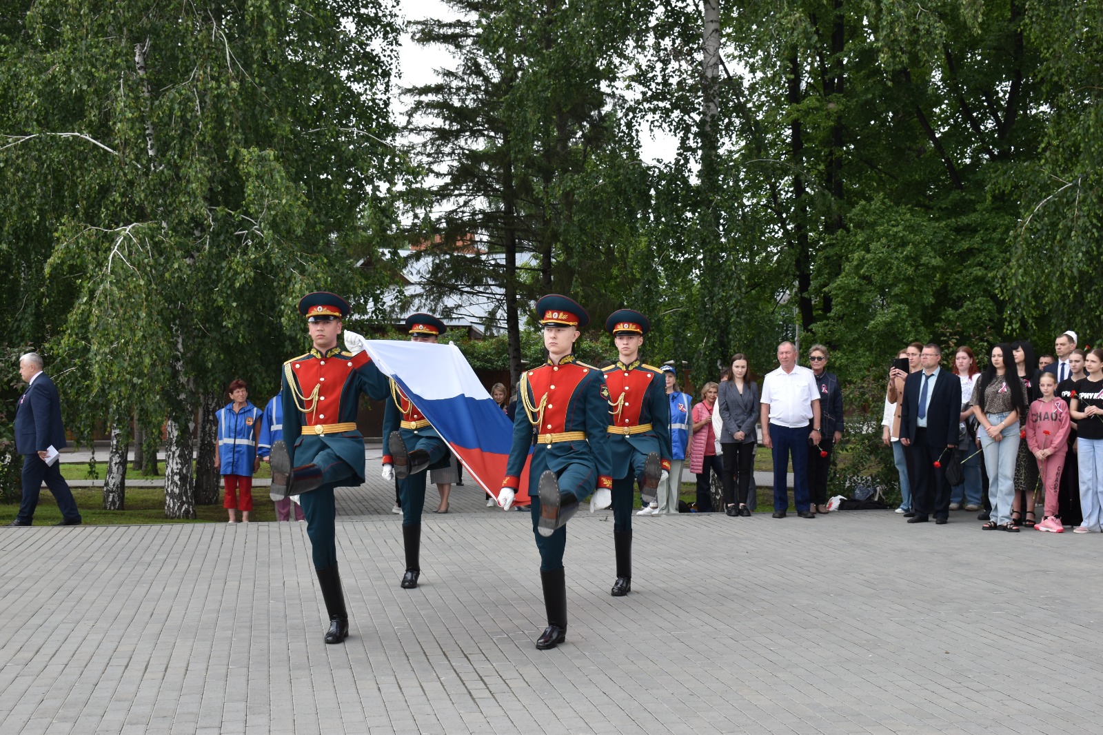 Празднование Дня России в Барнауле началось с торжественной церемонии поднятия флага Российской Федерации в Нагорном парке у стелы «Город трудовой доблести».