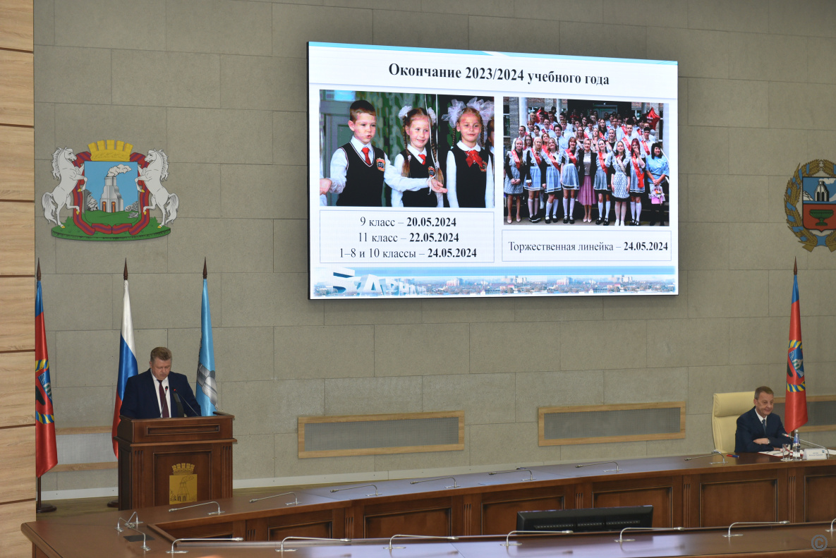 С информацией о предварительных итогах 2023-2024 учебного года и подготовке образовательных организаций к следующему учебному году выступил председатель городского комитета по образованию Андрей Муль .