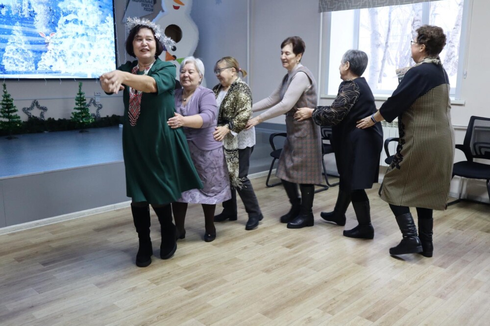 Любимая музыка, зажигательные танцы, праздничное настроение – дискотека «Танцуют все!» в самом разгаре. В таком необычном формате отметили Новый год участницы клуба любителей рукоделия.