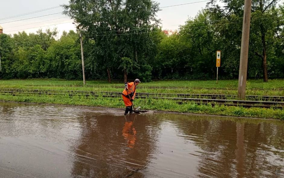 Барнаульские дорожники контролируют спуск воды после мощного ливня