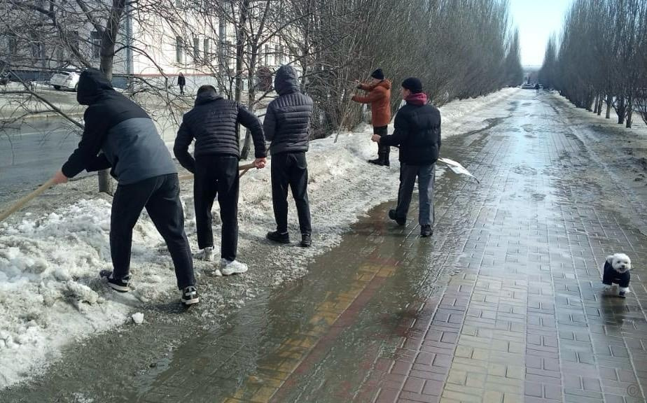 Студенты ворошили снега на участке от улицы Чкалова до улицы Партизанской.