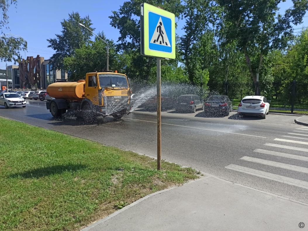Напомним, что орошение дорог производится в жаркое время. Эта мера помогает снизить температуру асфальтового покрытия дорог, что предотвращает его размягчение и деформацию.