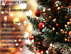 Уже не так много времени осталось до любимых всеми новогодних и рождественских праздников. У каждого из нас с ними связаны особенные предчувствия радости и счастья, ожидания чуда. Оформление города является одной из приоритетных составляющих при подготовке к зимним праздникам. Администрация города Бийска объявляет о проведении городского конкурса на лучшее новогоднее декоративно-художественное оформление «Новогодний Бийск» с 02.12.2024 по 22.01.2025.