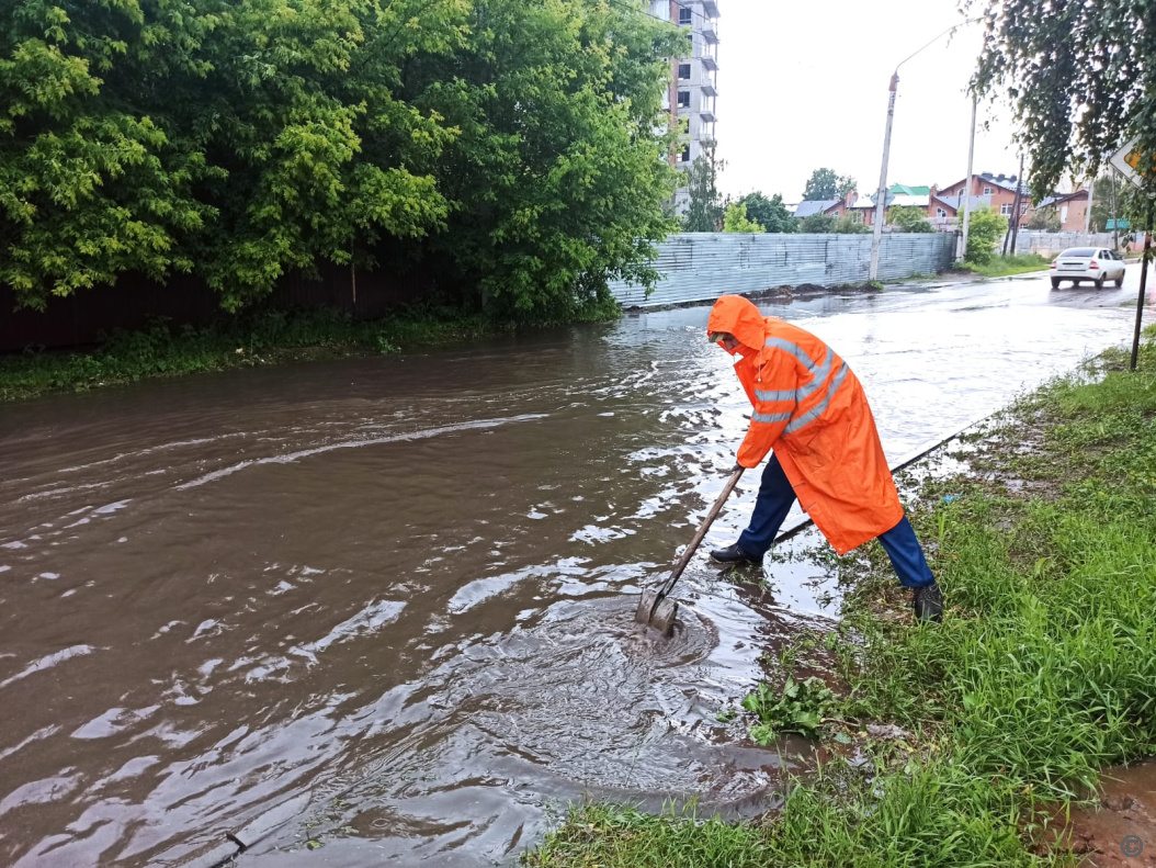 Дежурные бригады МБУ «Автодорстрой» с началом дождя выехали для мониторинга ситуации.