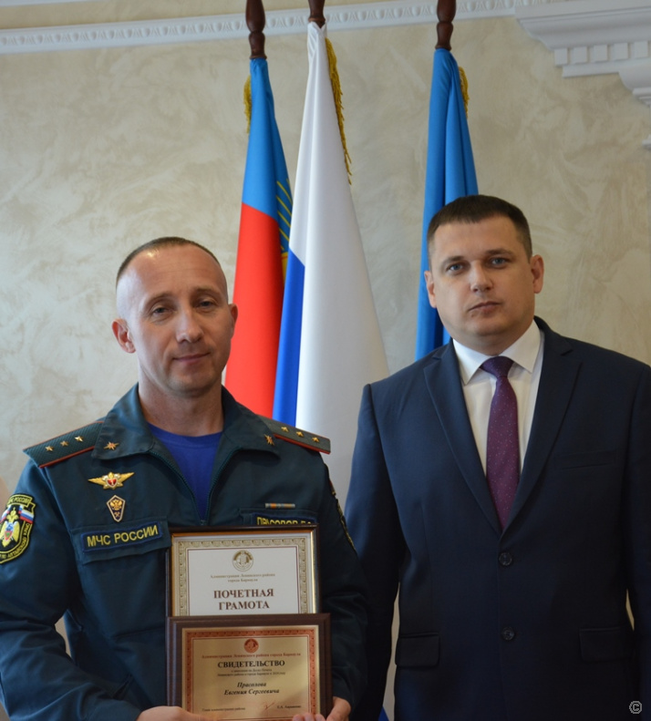 Прапорщик внутренней службы Евгений Прасолов неоднократно принимал участие в тушении пожаров и ликвидации последствий чрезвычайных ситуаций на территории Ленинского района. Его труд был высоко оценен, и в 2014 году он был награжден медалью МЧС России «За спасение погибающих на водах».