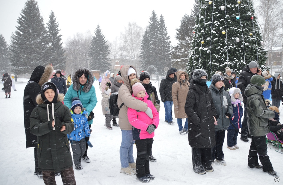 Для гостей праздника выступили артисты Центра развития творчества и спорта, представив театрализованную сказку «Гора самоцветов». Дед Мороз, Снегурочка, Царица Змея, Скоморохи и другие персонажи провели весёлые конкурсы.