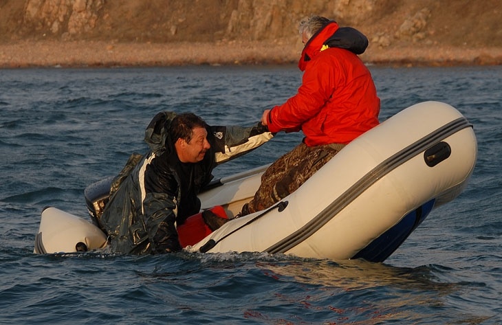 • поднимать из воды пострадавшего рекомендуется с носа или кормы (иначе можно перевернуться);
