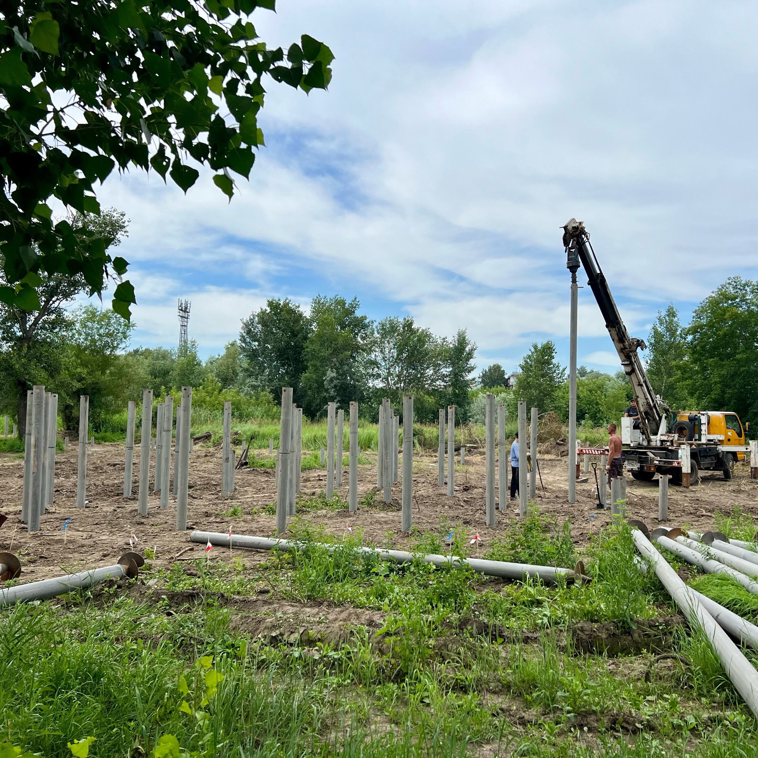 Установилась тёплая и сухая погода, поэтому ООО СМК "Ремтеплострой" наращивает темп работ. Сейчас подрядчик устанавливает сваи под летящую тропу, ведёт частичный спил деревьев и подготовку территорий для велосипедной дорожки, торговых павильонов и других площадок.
