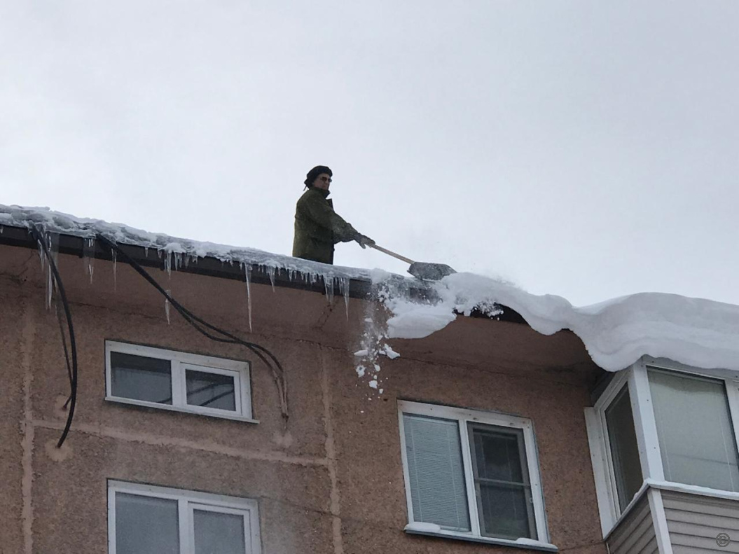 Управляющие компании очищают от снега и наледи кровли домов, расположенных на территории Октябрьского района