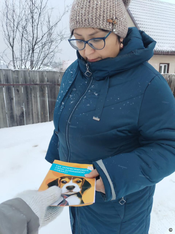 В праздничные дни информационная работа была проведена по частному сектору села Лебяжье, микрорайона Затон и посёлка Южный. Жителям раздали памятники с правилами регистрации домашних животных, а также напомнили им о работе мобильных пунктов.