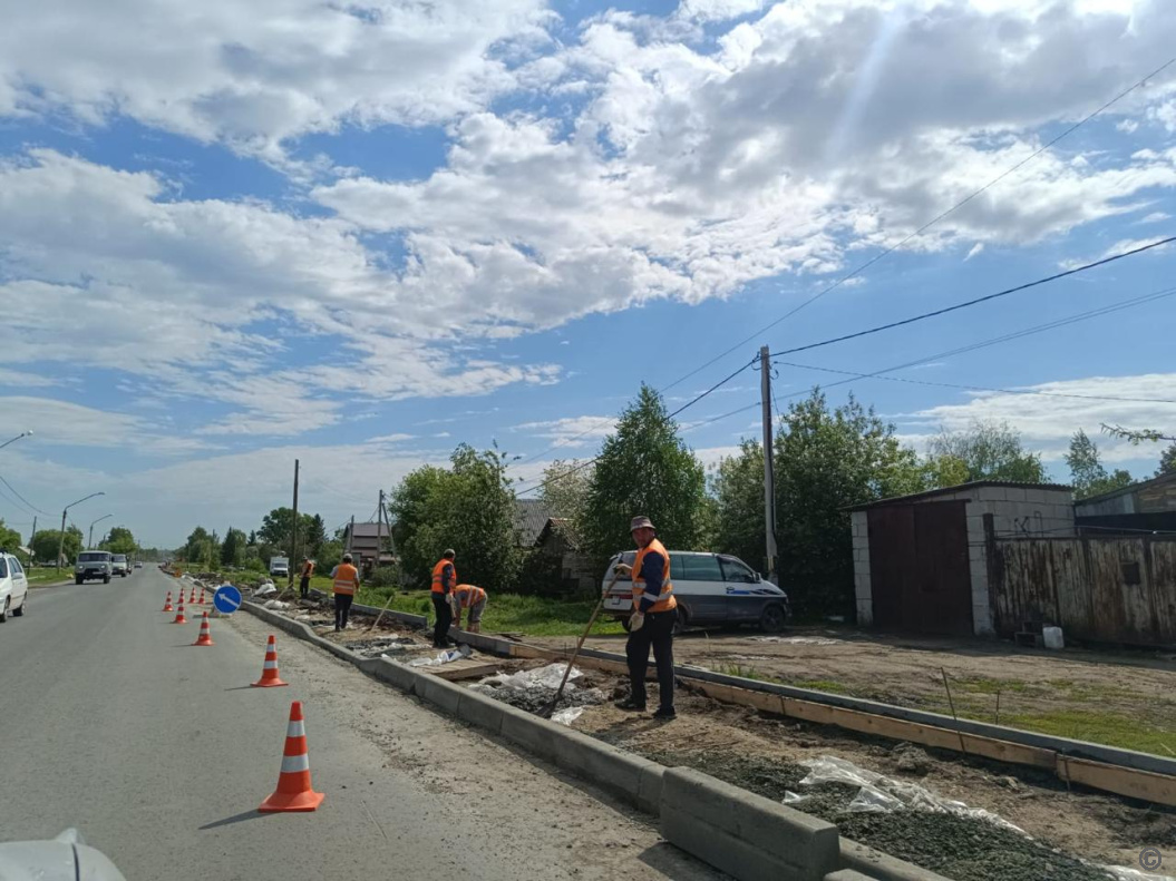 На сегодняшний день, 27 мая, по ул.Мамонтова и ул.Ветеринарной в с.Власиха ведется устройство выравнивающего слоя, установка бордюрного камня и устройство основания под тротуар.
