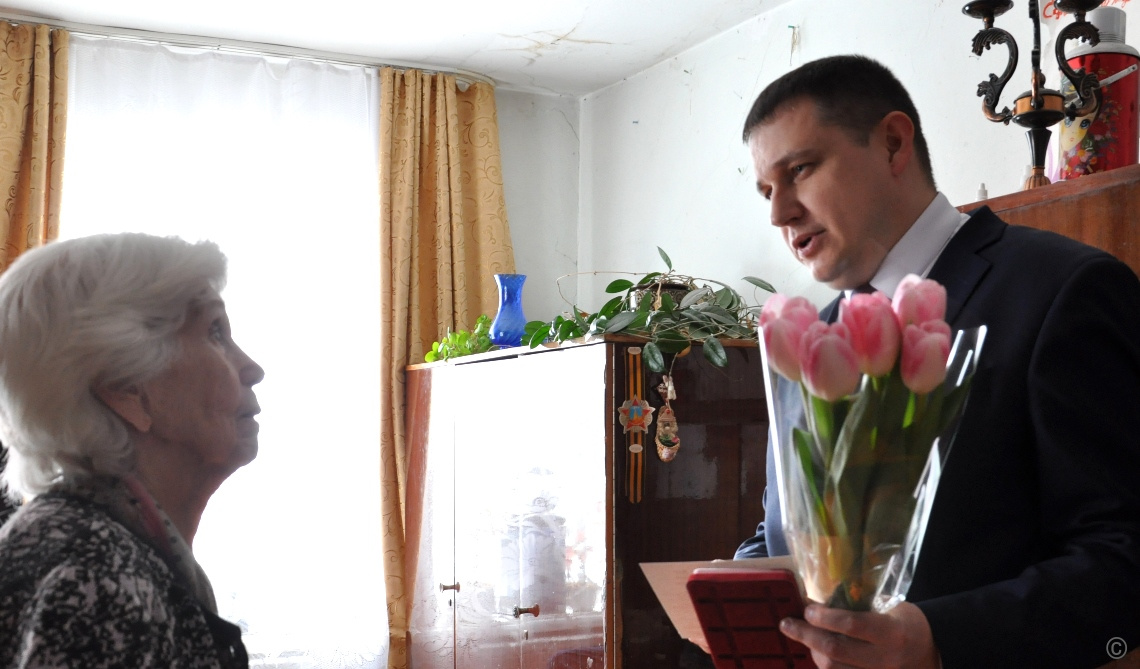 В преддверии праздника 8 Марта поздравить ветерана с Международным женским днем и вручить юбилейную медаль «80 лет Победы в Великой Отечественной войне 1941—1945 гг.», а также передать подарок от от фонда Героя России В.А. Шаманова «Защитники Отечества» пришел глава администрации Ленинского района Евгений Авраменко.
