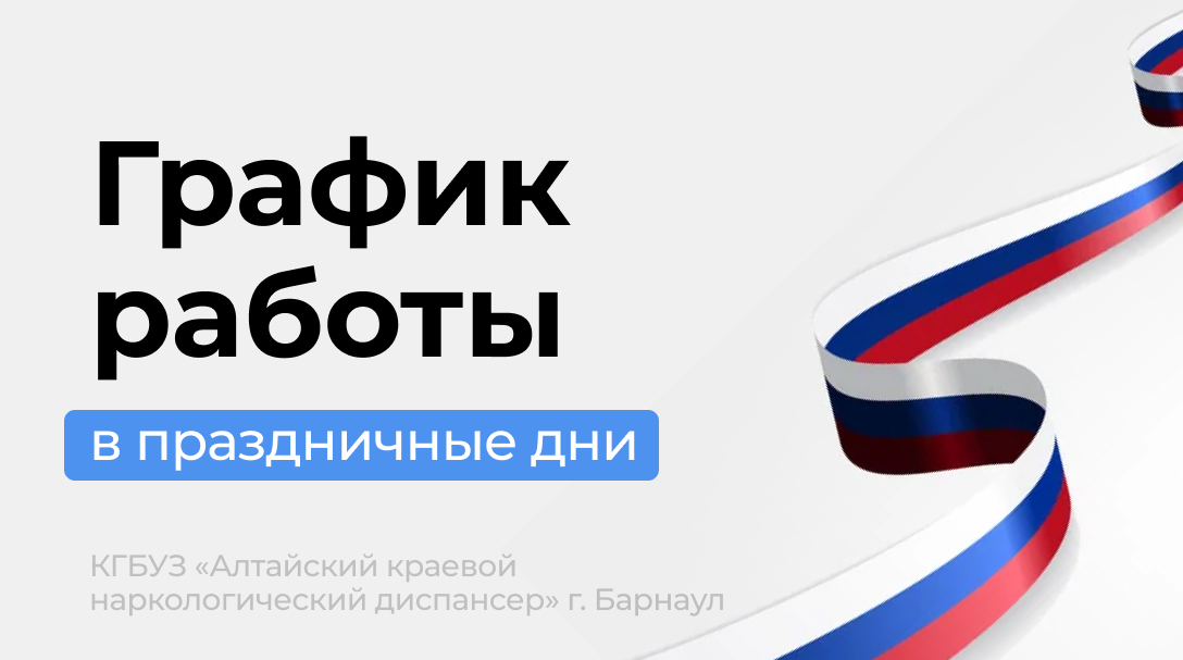 График работы КГБУЗ «Алтайский краевой наркологический диспансер» в праздничный день 12 июня 2024 года