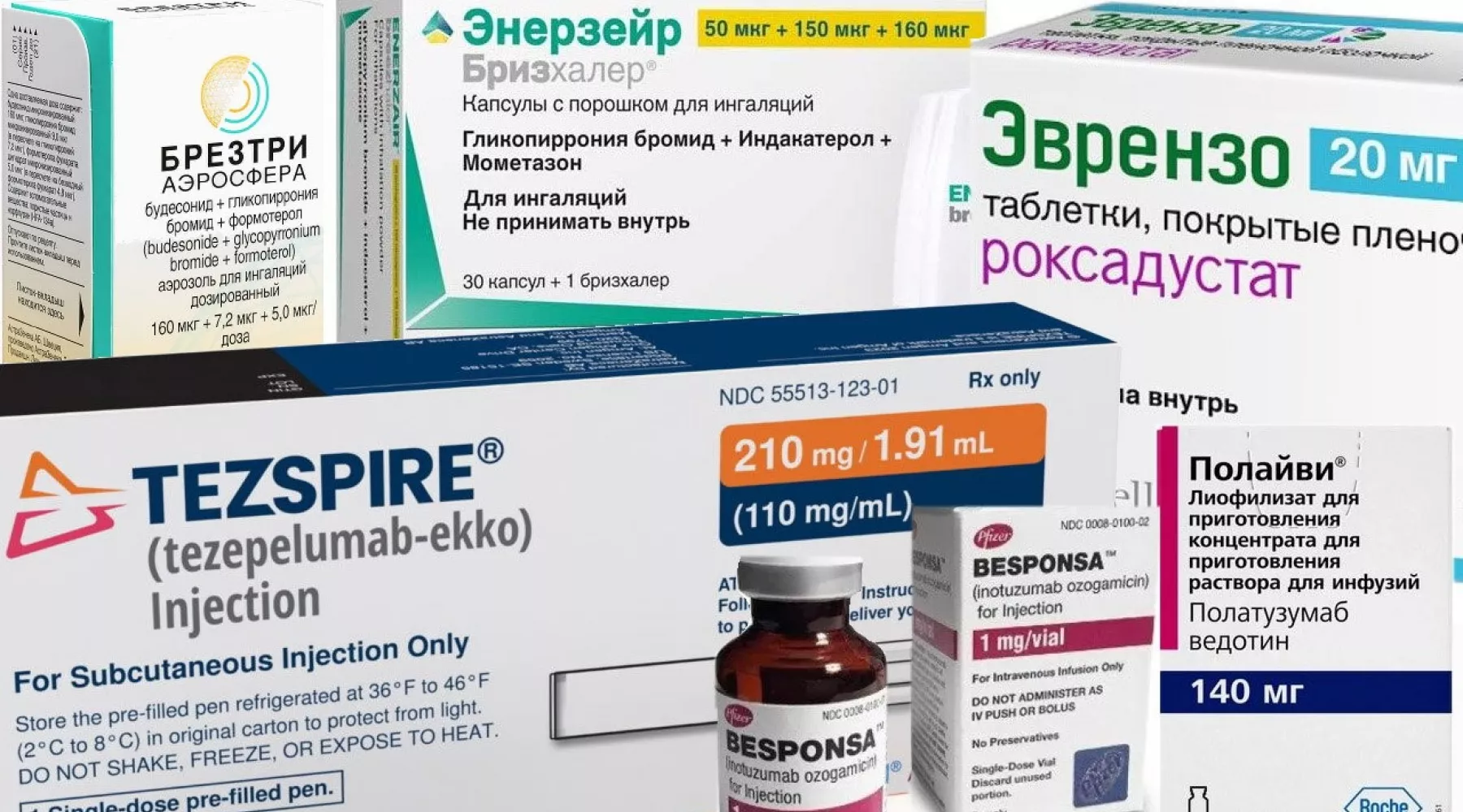 Это касается препаратов для лечения обструктивных заболеваний дыхательных путей, бронхиальной астмы, анемии, лимфомы и лейкоза.